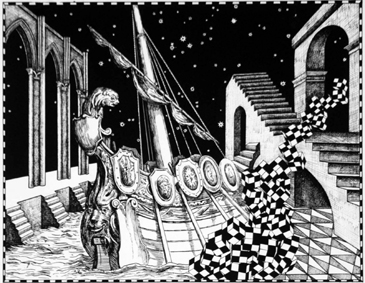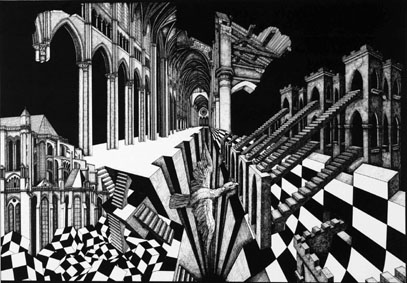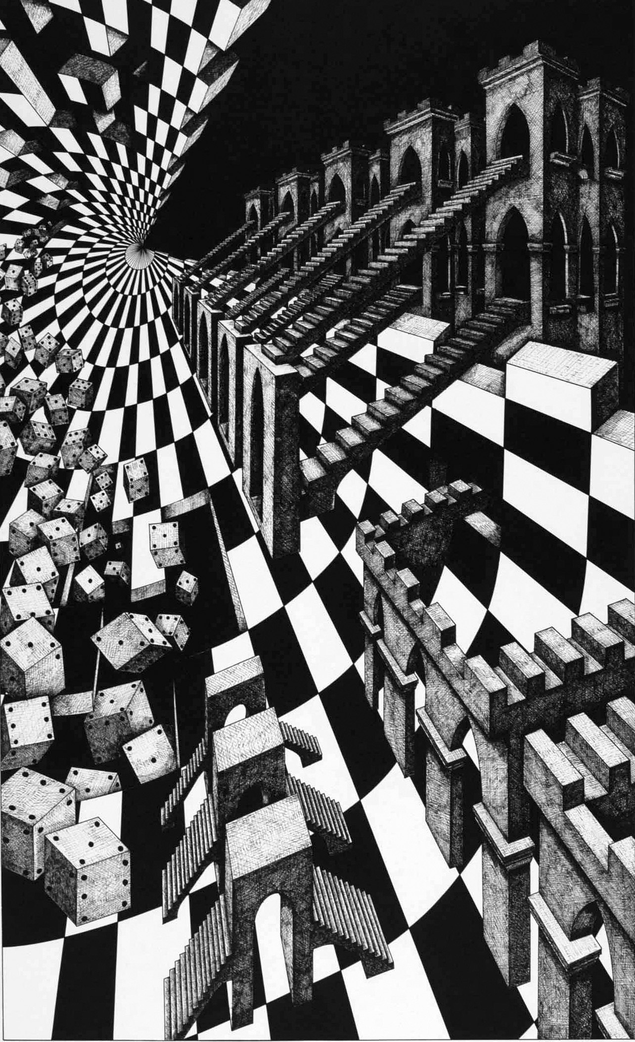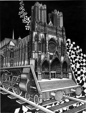 Dans cette lithographie intitulée "Espace, Temps, Matière",