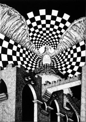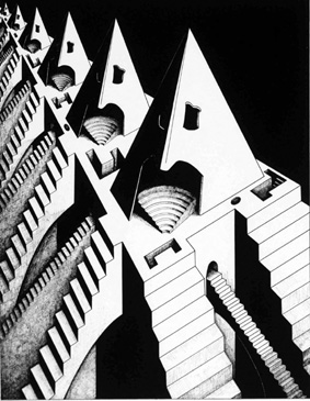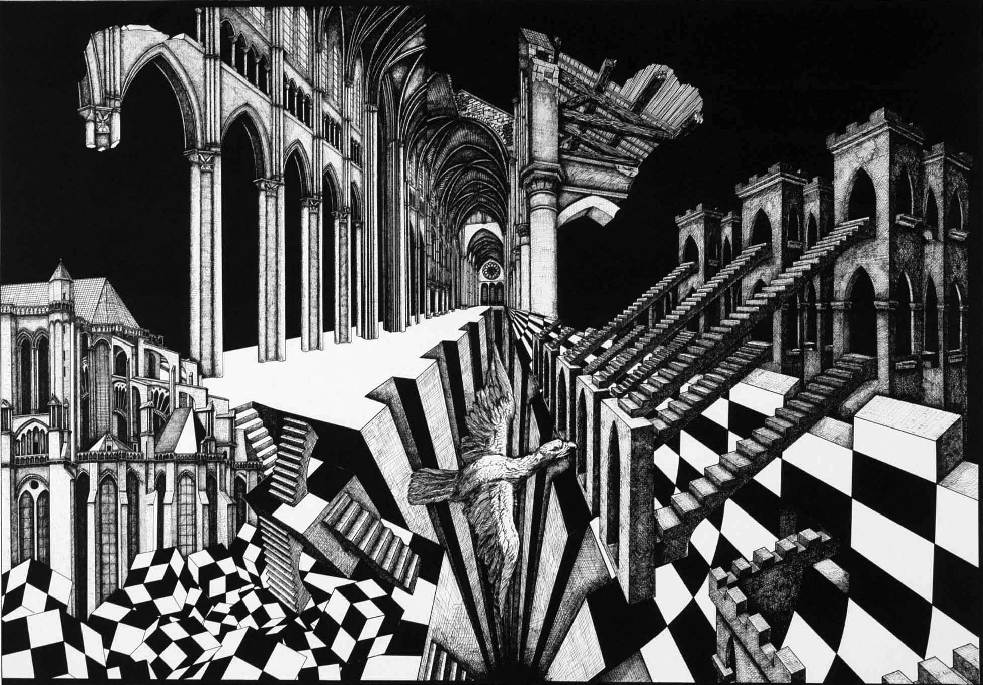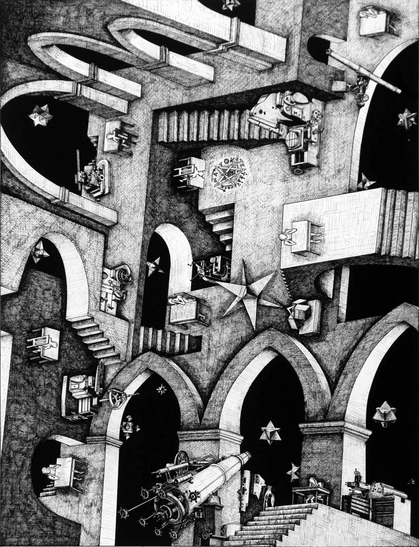 L'Observatoire (Hommage à Escher) -- lithographie (1992)